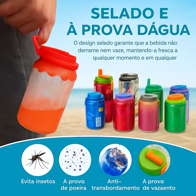 Fácil de usar: basta encaixar na lata e pronto, sua bebida estará protegida e conservada.